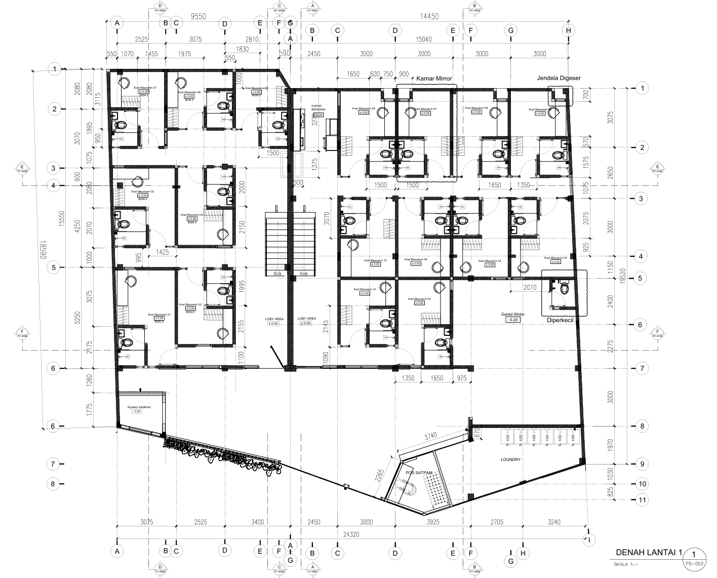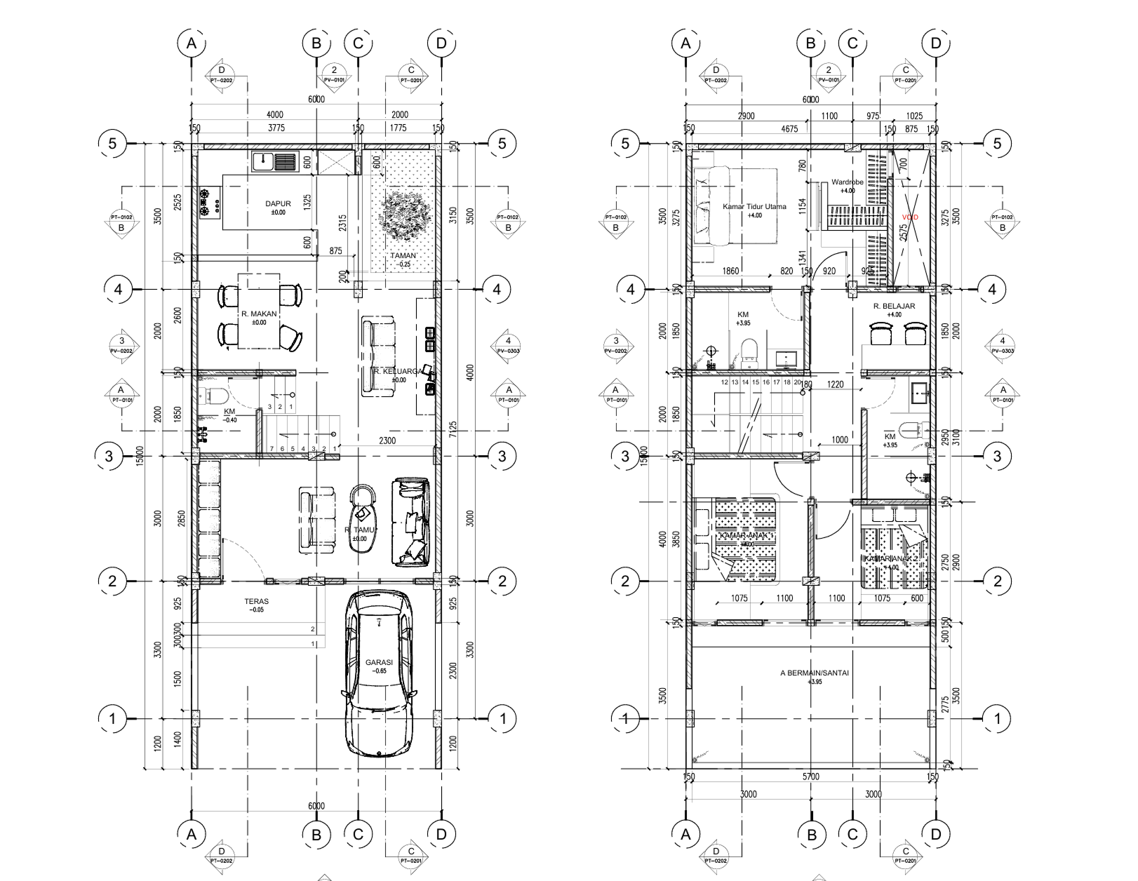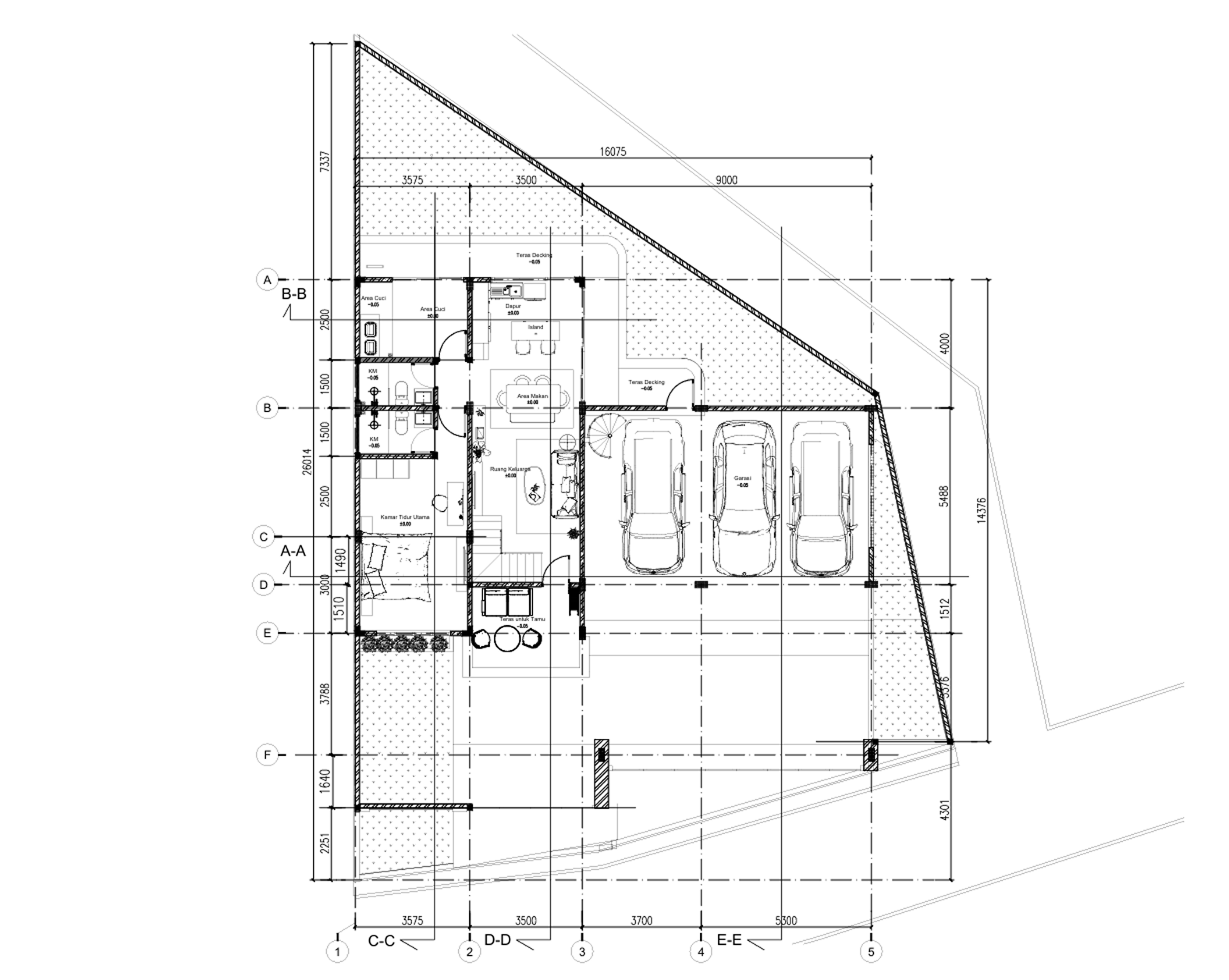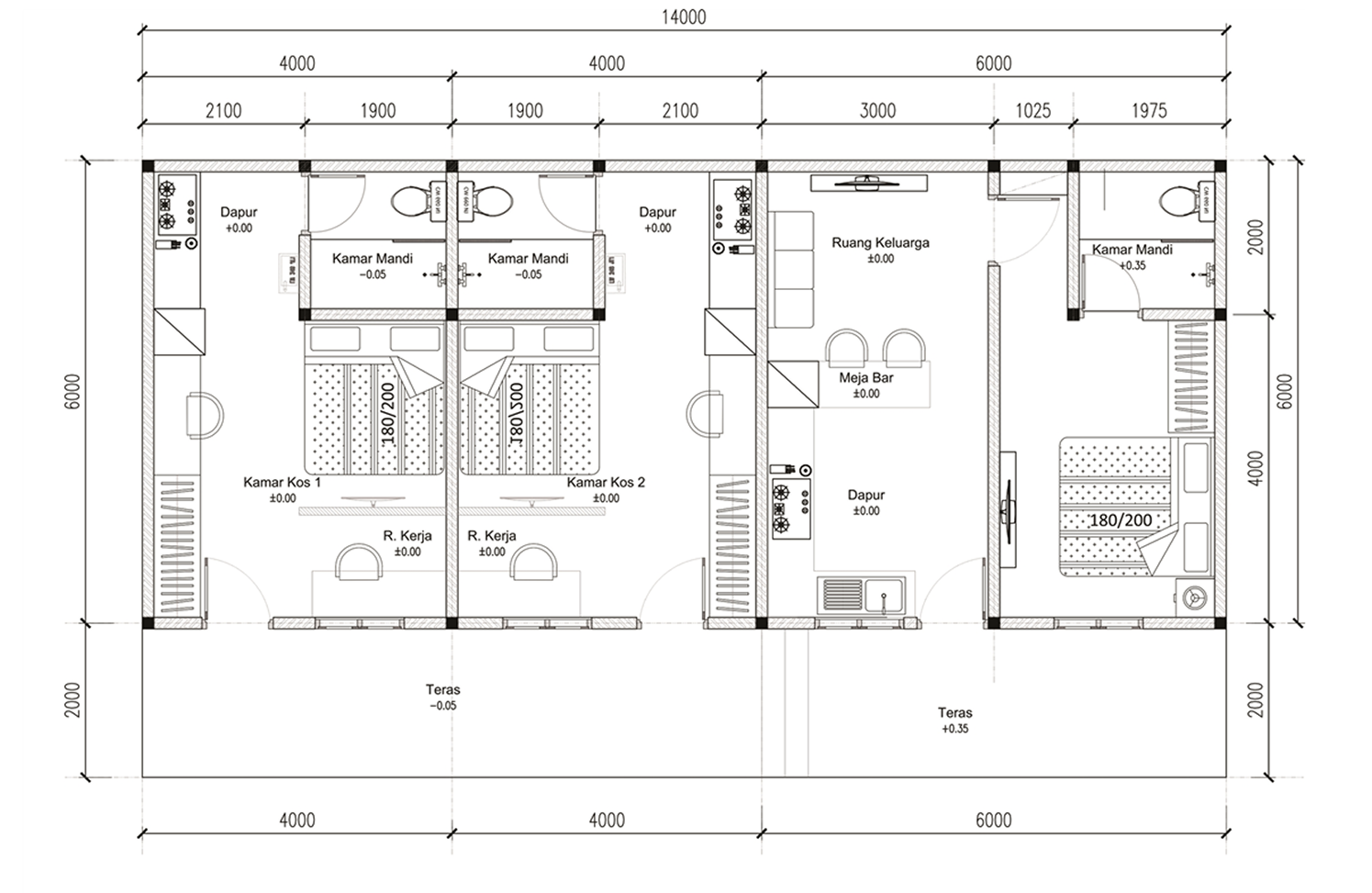 Gambar 2D berfungsi sebagai acuan kerja bagi kontraktor dan tukang. Detail ukuran, material, serta posisi elemen bangunan ditampilkan secara presisi sehingga meminimalisir kesalahan di lapangan.